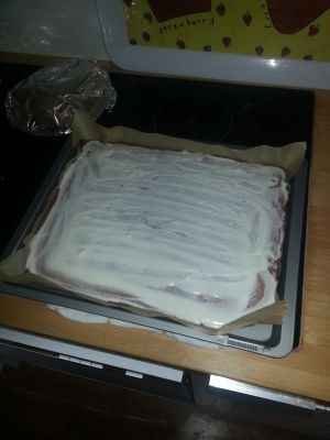 Die Masse in ein gefettetes Blech geben.
